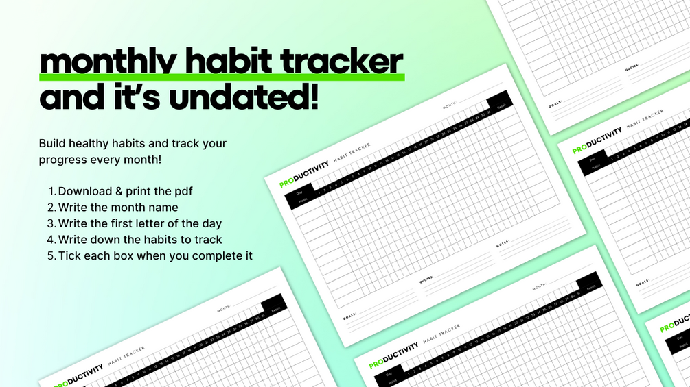 Achieve your goals and maximize your productivity with our Monthly Habit Tracker. This free, single-page PDF is designed to help you build and maintain positive habits with ease.